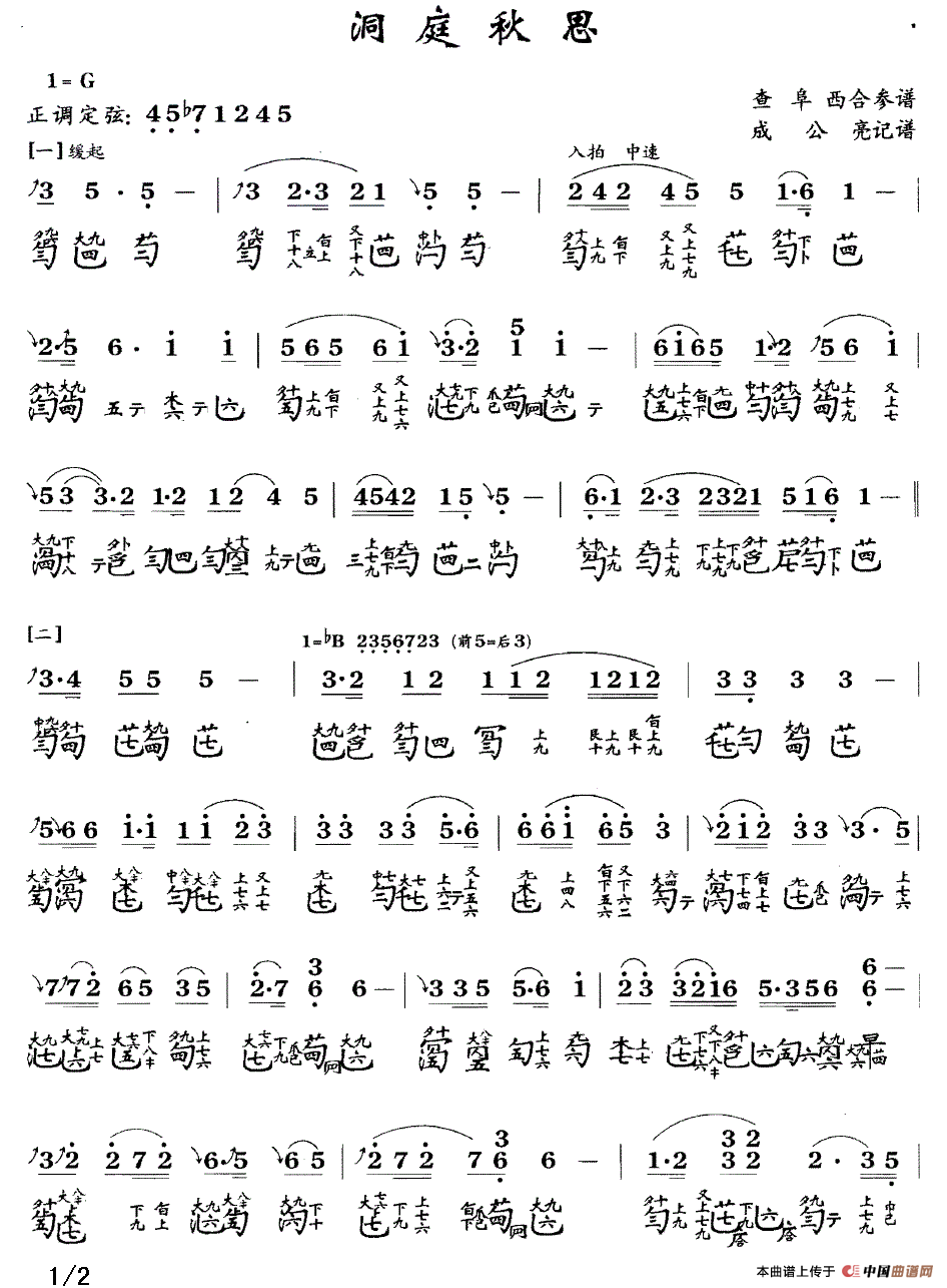 此曲为查阜西先生据明末《琴书大全》、《松弦馆琴谱》、《大还阁琴谱》合参打谱整理。是一首经典小曲,能代表查阜西先生清微淡远之琴风。[ 打印曲谱:简谱 | 五线谱 ]